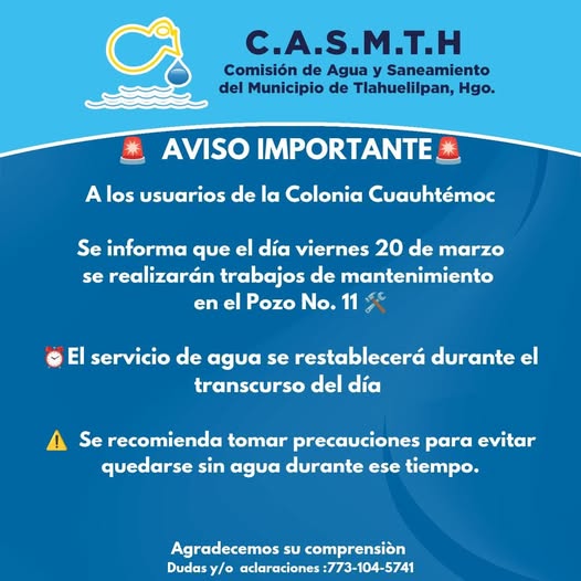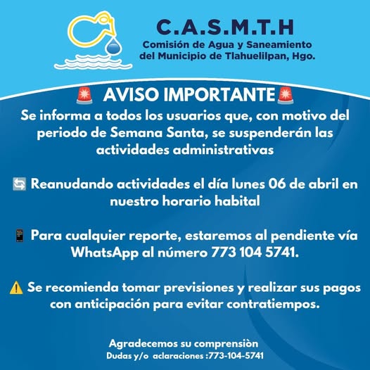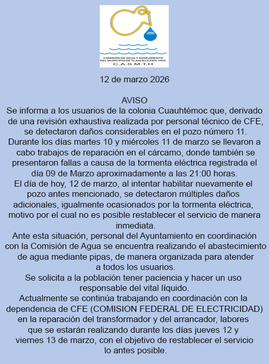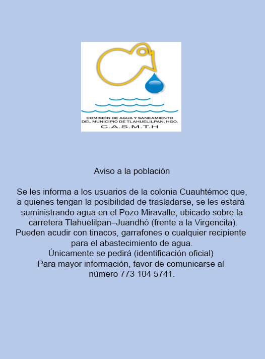 COMISIÓN DE AGUA Y SANEAMIENTO DEL MUNICIPIO DE TLAHUELILPAN, HGO.